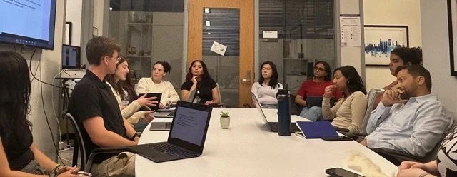 Katherine Damme, Tina Gupta, and Sekine Oztruk hard at work at processing data